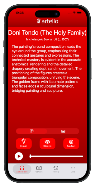 Whether you’re strolling through a museum or gazing up at a historic landmark on your travels, Artelio turns your phone into a smart, interactive audio guide that brings artworks to life.