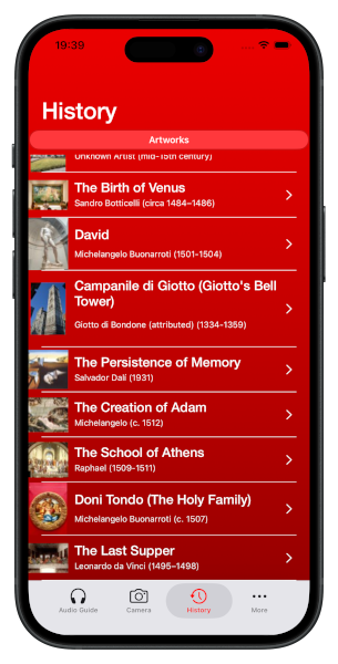 - Your art trail, saved: every piece you discover is added to your History, so you can replay the audio or review details anytime.